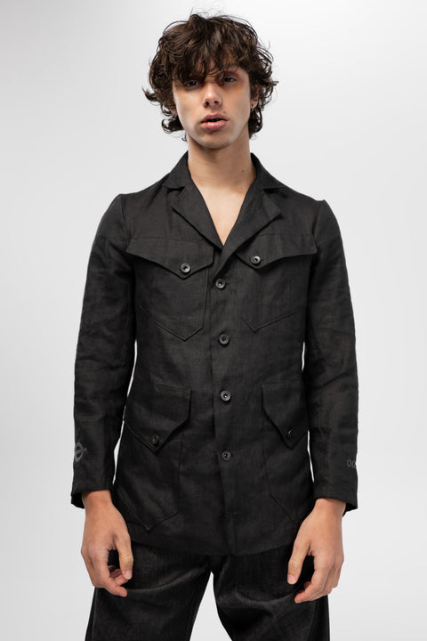 Saharan with four pockets, front button closure, center back vent, tailored sleeves.